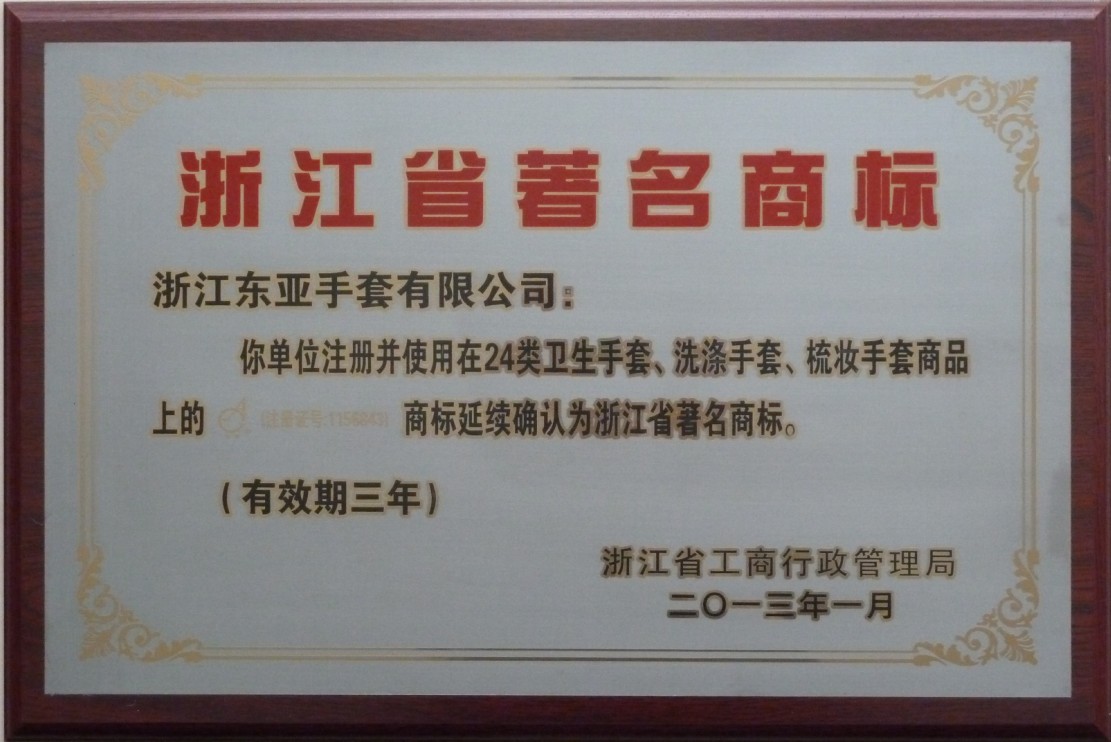 • 東亞手套獲評(píng)浙江省著名商標(biāo)