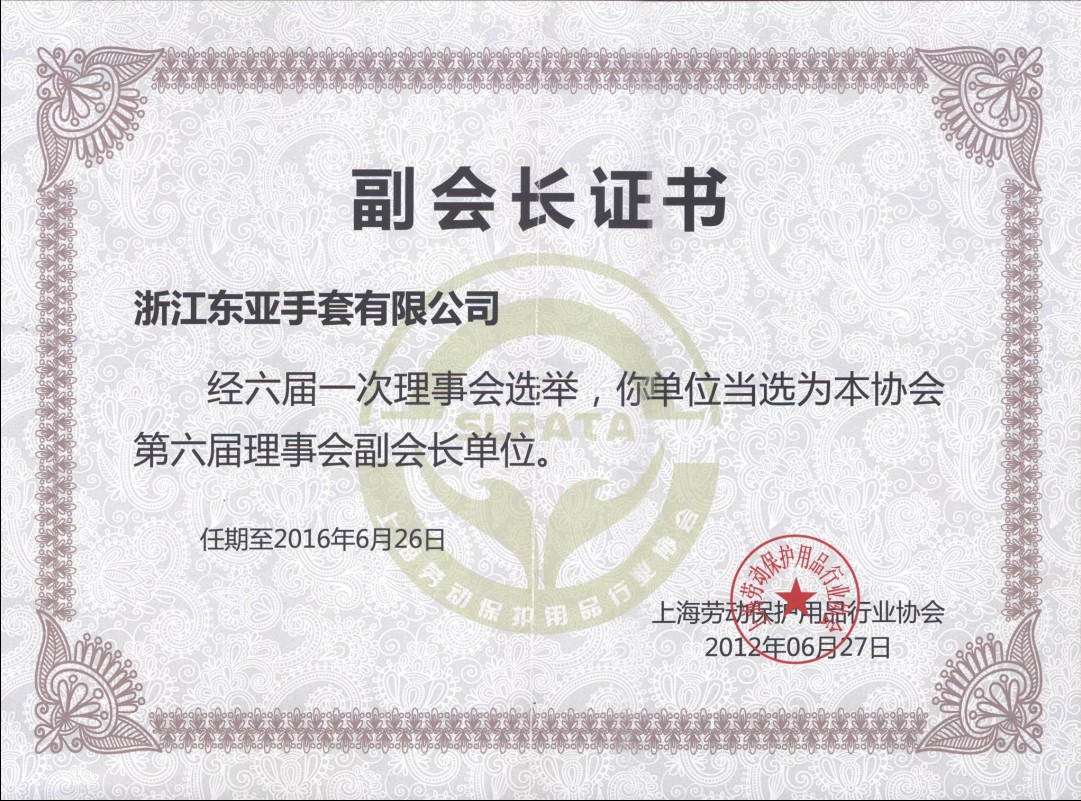 • 上海勞動(dòng)保護(hù)用品行業(yè)協(xié)會(huì)副會(huì)長(zhǎng)證書(shū)